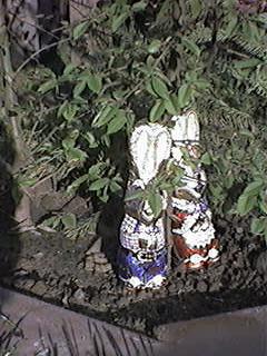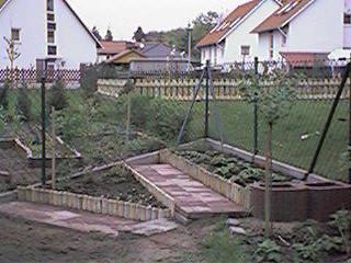 Ostern 2000 Der Hase war fleißig und die Sonne auch. Das Wetter ist so richtig zum loswuchern und da wir in der diesjährigen Grillsaison die Kräuterbutter mit den Kräutlein aus eigener Zucht bestreiten wollen, ist es höchste Zeit die entsprechenden Beete anzulegen. (Der Baumarkt ruft schon wieder!) Als erstes beziehen die Erdbeeren ihr neues zu Hause und damit wird dann Platz für die Kräuterecke. ![]() ![]()