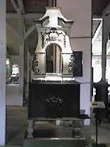 Auf dem Hof des Ofenmuseums hat der Töpfermeister